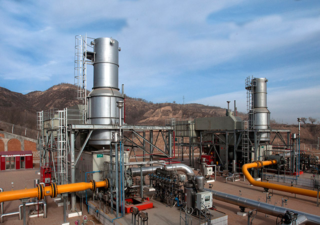 陕鼓自主研发的管线压缩机组以其优异的气动性能和稳定的结构特点处于世界先进水平,已通过中机联、合肥通用机械研究所科学技术成果鉴定,机组整体指标达到国内先进水平,其效率和工况范围等技术指标达到国际先进水平。机组工作转速调节范围拓宽至55%~105% ,设计点工况多变效率高达87%以上。已向陕燃、中海油、中石油提供近20套市场业绩。创新机组布置技术,陕鼓可提供燃驱、高速电机直驱及普通电机带增速箱驱动的机组总成技术方案,同时能够提供磁力轴承一体机产品。陕鼓拥有成套燃机的能力及业绩。